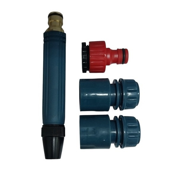 این نازل کارواش دارای 4 تکه ، شامل 2 عدد کوپلینگ شینگ خور و یک قطعه سر شلنگ خور و خود نازل آب می باشد که کمک می کند تا آب به صورت مناسبی بسته به نوع سطح مورد نظر شما پاشیده شود. قسمت وسط نازل برای جلوگیری از پوسیدگی از جنس پلاستیک و قسمت خروجی به منظور جلوگیری از سایش و فرسایش و زنگ زدگی از جنس برنج استفاده شده است . این مجموعه با دوام و کیفیت بالا ، مناسب جهت شست و شو و نظافت های خانگی ، شستن خودرو و همچنین آبیاری باغچه و گل می باشد .