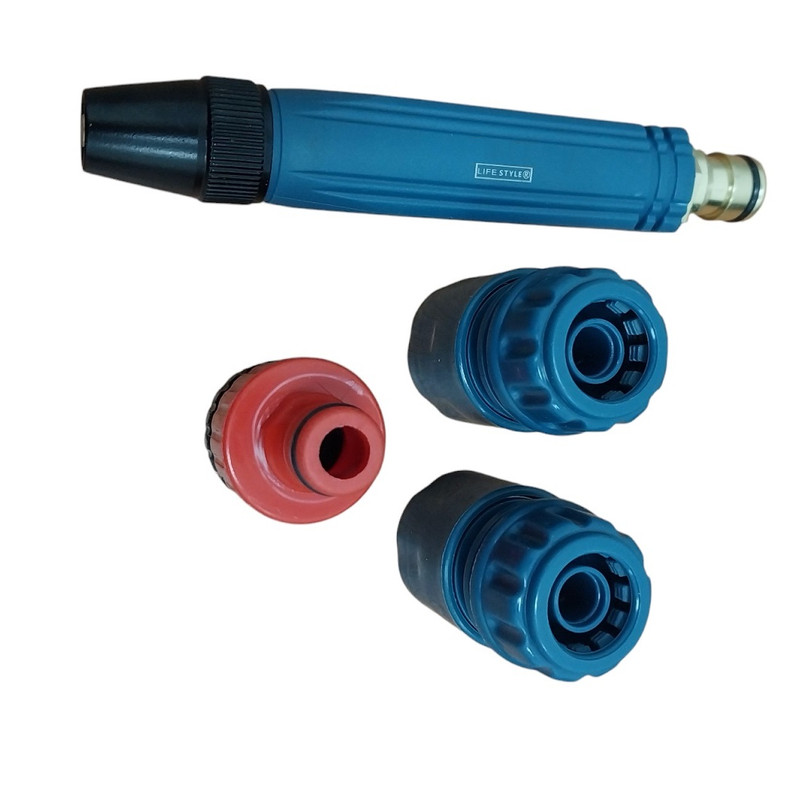 این نازل کارواش دارای 4 تکه ، شامل 2 عدد کوپلینگ شینگ خور و یک قطعه سر شلنگ خور و خود نازل آب می باشد که کمک می کند تا آب به صورت مناسبی بسته به نوع سطح مورد نظر شما پاشیده شود. قسمت وسط نازل برای جلوگیری از پوسیدگی از جنس پلاستیک و قسمت خروجی به منظور جلوگیری از سایش و فرسایش و زنگ زدگی از جنس برنج استفاده شده است . این مجموعه با دوام و کیفیت بالا ، مناسب جهت شست و شو و نظافت های خانگی ، شستن خودرو و همچنین آبیاری باغچه و گل می باشد .