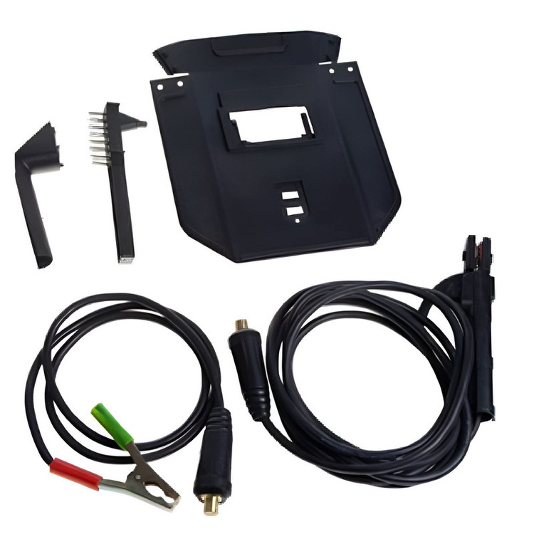 کابل جوش، کابل اتصال، انبر جوش، انبر اتصال، دفترچه راهنما، ماسک جوشکاری و فرچه می باشد.
