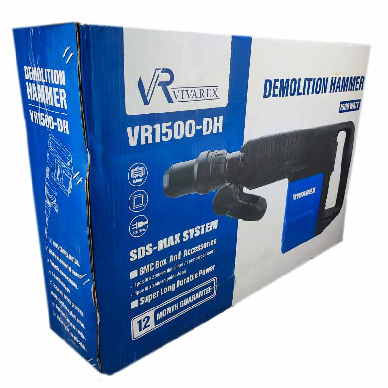 چکش تخریب ویوارکس مدل VR1500-DH یک ابزار قدرتمند و کارآمد است که برای انجام عملیات تخریب در پروژههای ساختمانی و عمرانی طراحی شده است. این چکش تخریب با وزن 11 کیلوگرم، توان موتور 1500 واتی و سیم پیچ مسی، قدرت و عملکرد بالایی را برای انجام سختترین عملیات تخریب فراهم میکند.وجود قفل سوییچ، ایمنی کاربر را در حین کار تضمین میکند و به کاربران امکان میدهد تا به راحتی و با دقت بالا، انواع سطوح بتنی، آسفالت و سنگی را تخریب کنند. این دستگاه مجهز به یک موتور 1500 واتی است که توان کافی برای انجام سختترین عملیات تخریب را فراهم میکند. استفاده از سیم پیچ 100% مس در موتور، علاوه بر افزایش طول عمر دستگاه، باعث بهبود عملکرد و کاهش اتلاف انرژی میشود. وجود قفل سوییچ، ایمنی کاربر را در حین کار تضمین میکند و از روشن شدن ناگهانی دستگاه جلوگیری میکند. طراحی ارگونومیک دسته جانبی، کنترل و مانورپذیری دستگاه را افزایش داده و از خستگی کاربر در طول استفاده طولانی مدت جلوگیری میکند. این دستگاه مجهز به موتور قدرتمند و پر توان ۱۵۰۰ واتی، سیم پیچ صد در صد مس، قابلیت تخریب سریع و قدرتی با ۲۲۵۰ ضربه و انرژی ضربه ای ۲۱ ژول، دکمه قفل کن جهت انجام کار مداوم، سیستم ابزارگیر حرفه ای SDS-MAX و همچنین وسایل همراه چکش تخریب ویوارکس یک عدد مته ۲۸۰*۱۸ میلیمتر، یک عدد قلم تخت ۲۸۰*۱۸ میلیمتر، دارای کیف با دوام BMC، گیربکس صنعتی آلومینیومی با کیفیت را دارا میباشد.