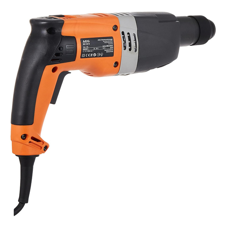 دریل دوکاره (یعنی فقط 1-چرخشی 2- چرخشی و چکشی (عملکرد به تنهایی چکشی ندارد) آاگ مدل BH22E از تولیدات شاهکار شرکت AEG بوده و برای افرادی که میخواهند یک دریل چکشی بسیار قوی و سبک داشته باشند مناسب است. این دستگاه ساخت المان می باشد و در مقایسه با بسیاری از دریلهای چکشی از قدرت تخریب و سوراخکاری بیشتری روی سطوح سیمانی و گچی برخوردار است. این محصول سری توان مصرفی این محصول 650 وات بوده و از قابلیت تنظیم سرعت سود میبرد. این ویژگی به کاربر این امکان را میدهد تا با دقت بیشتری سطح مورد نظر را سوراخ کند. اگرچه این دستگاه سرعت چرخش بالایی ندارد و در بازه 0 الی 1290 دور بر دقیقه است اما به لطف نرخ ضربهی 2.5 ژولی که دارد قادر است بهخوبی و مانند قند سطوح ساخته شده از مصالح ساختمانی را سوراخ کند. از دیگر ویژگیهای این محصول میتوان به قابلیت چرخش آن در دو جهت راستگرد و چپگرد اشاره کرد که موجب شده بتوان هر دو نوع مته راستگرد و چپگرد را روی دستگاه نصب کرد. سه نظام این محصول 4شیار است و به همراه آن یک کیف حمل محکم و مقاوم بسیار مرغوب عرضه شده اتست