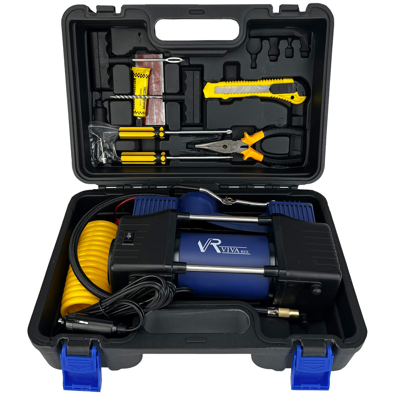 سه سری نازل باد- شلنگ فنری- کاتر- یک عدد پیچ گوشتی دوسو- یک عدد پیچ گوشتی چهارسو- یک عدد دم باریک- چسب مایع- ابزار پنچرگیری- گیره باتری خودرو به همراه کابل- جعبه BMC با قابلیت قرار دادن کلیه متعلقات