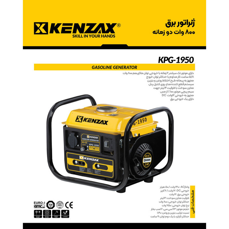 موتور برق بنزینی 2 اسب بخار کنزاکس مدل KPG-1950 دو زمانه 800 وات