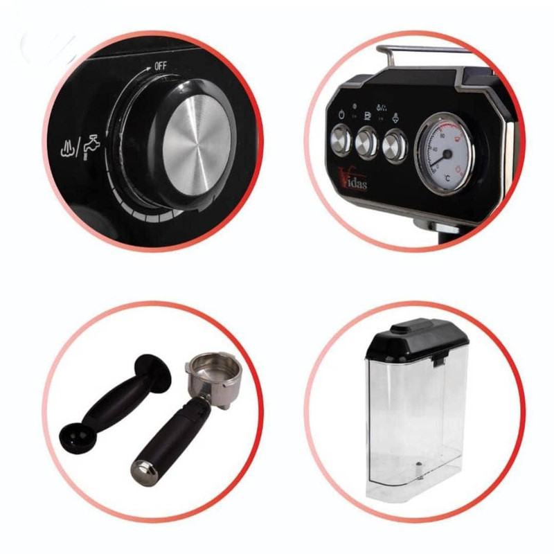 اسپرسوساز ویداس VIR-2348 با توان 1800 وات و فشار بخار 20 بار، امکان تهیه اسپرسویی با کرمای غلیظ و طعمی قوی را فراهم میکند. فشار بخار بالای این دستگاه، عصارهگیری کاملی از دانههای قهوه را تضمین میکند و نوشیدنیهایی با عطر و طعم بینظیر به شما ارائه میدهد.