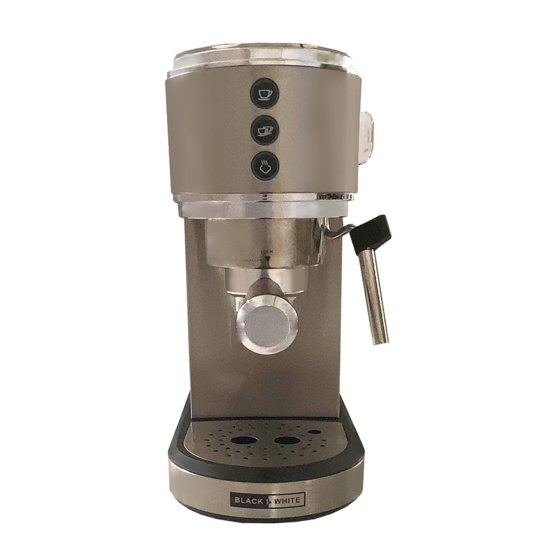 اسپرسو ساز بلک اند وایت با فشار 20 بار بخار جز دستگاه های خانگی لوکس یا نیمه صنعتی به شمار می رود جنس بدنهی این دستگاه از استیل ضد زنگ است که علاوه بر جذابیت، طول عمر و کیفیت بیشتری خواهد داشت. با این دستگاه میتوانید تمامی قهوههای فوم دار را تهیه کنید و از صفحه گرم کننده فنجان کمک بگیرید تا فنجان قهوه را برای سرو نوشیدنی مورد نظر خود گرم کنید. نازل بخار این دستگاه قهوه را می توان برای تهیه فوم شیر استفاده کرد. نازل قهوه ی این دستگاه ساخته شده از استیل است که هیچ ضرری برای سلامتی شما ندارد و هیچ مواد سمی ای را وارد شیر یا قهوه نمی کند و همچنین قابل شستشو و بادوام است.پرتافیلتر این اسپرسوساز دارای کیفت ساخت بالا می باشد که دارای سبد استیل و یک دستگیره از جنس چوب راش با روکش باکالیت نسوز با رنگ مشکی می باشد.این محصول با یک سبد سینگل، یک سبد دابل و یک تمپر در اختیار شما عزیزان قرار میگیرد. از دیگر ویژگی های این محصول می توان به سیستم قطع خودکار، دماسنج، سیستم شست و شوی خودکار و کم مصرف بودن این دستگاه اشاره کرد.